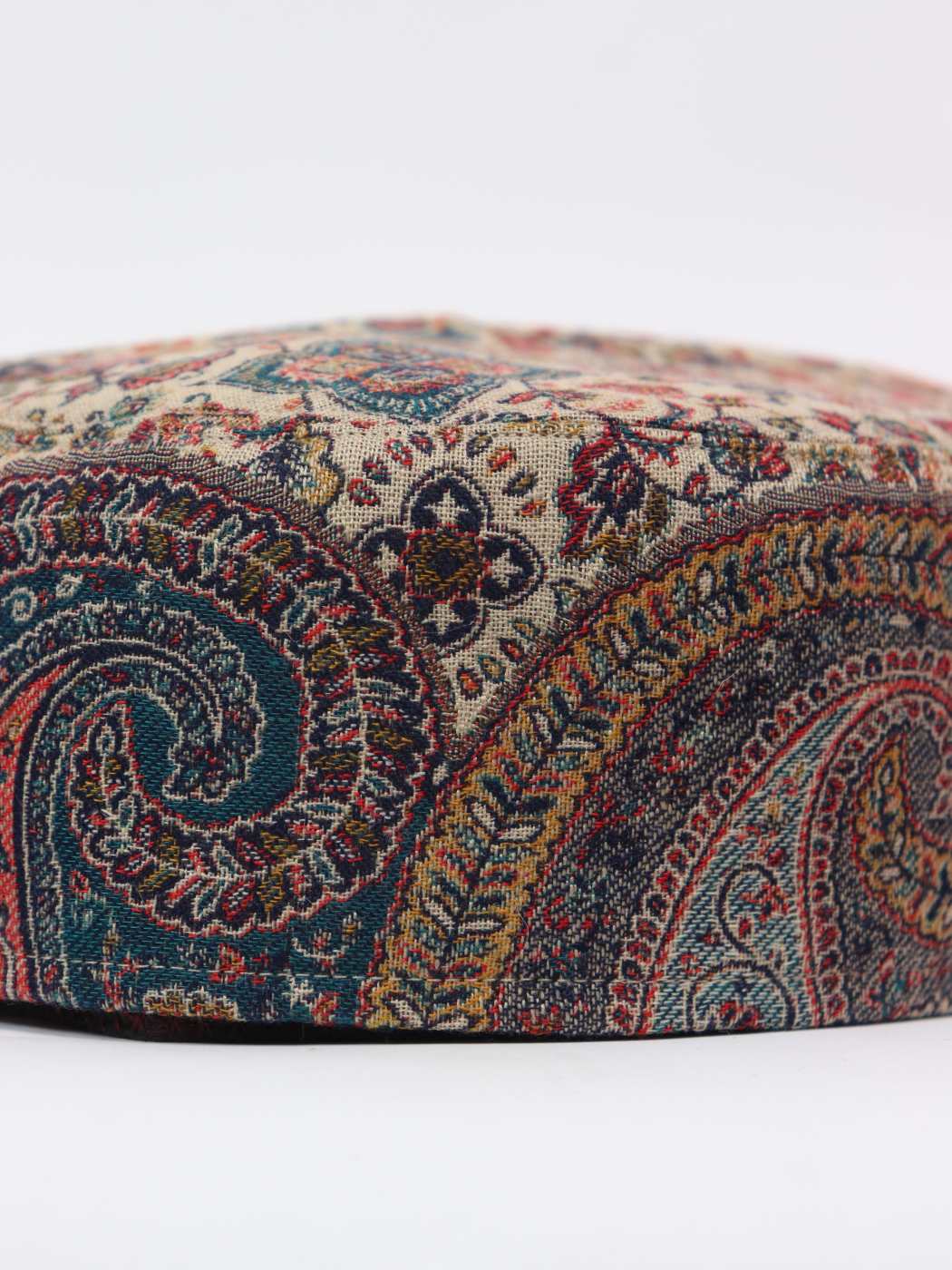 Crafted using Kani shawl, this classic cap in black colour delivers timeless appeal for gifting or personal wear. It showcases Kashmiri skill, comes in size 24 inches. It includes badam curve design around borders and floral motifs, which lends a decorative touch to its traditional form