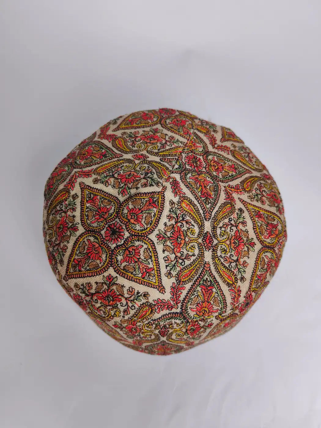 Crafted in wool for refined style, this beige hue cap for gents features sozni embroidery in heavy paisley pattern all over it. It provides comfortable fitting and cultural charm which makes this Topi suitable for gatherings and special occasions.