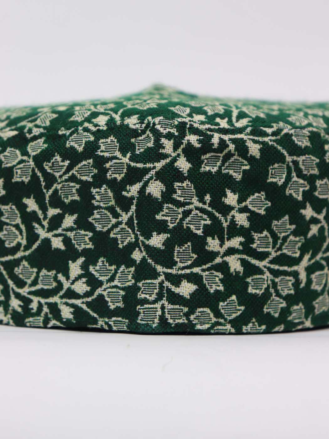 Made from Kani shawl, this foldable kani cap for gents is suitable for personal styling or gifting. It carries Kashmiri heritage, size 24. It features floral design around borders and top which enhances its charm while maintaining a clean, classic appearance.